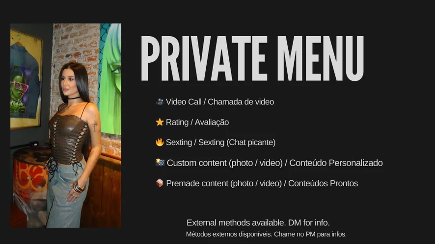 Seksilelut, Cosplay, Korkokengät, Tuhmat puheet, Korsetti, Sormetus, Squirt(999tks extra), Strippaus, Eroottinen tanssi, Öljyesitys, Selkäsauna, Doggy Style, Kalu-luokitus, Twerkkaus, Lehmityttö, Syväkurkku, Orgasmi, Masturbointi, Dildo tai vibraattori, Suihinotto, Vilauttelu, Anaali, Squirttaus, Roolileikki, Jooga, Runkkausohjeet, Nöyryytys, Jalkafetissi, Tupla penetraatio, Anaali - Suu, Anaalilelut, Gape, Cuckold, Valtiatar, Parinvaihto, Facesitting